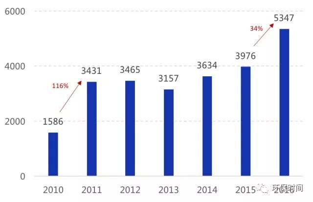 2)这种统计量的增长在2011年时也曾发生,2011年危废产量在1kg以上的均纳入统计,所以当年由2010年之前产生量1500万吨左右飞跃到3400多万吨。