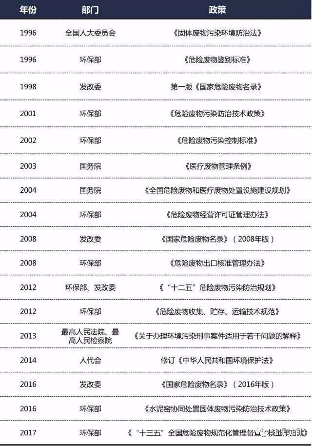 1)2017年环保部出台“十三五”全国危险废物规范化管理督查考核工作方案,各省近期均推出省级危废规范化管理督查方案;